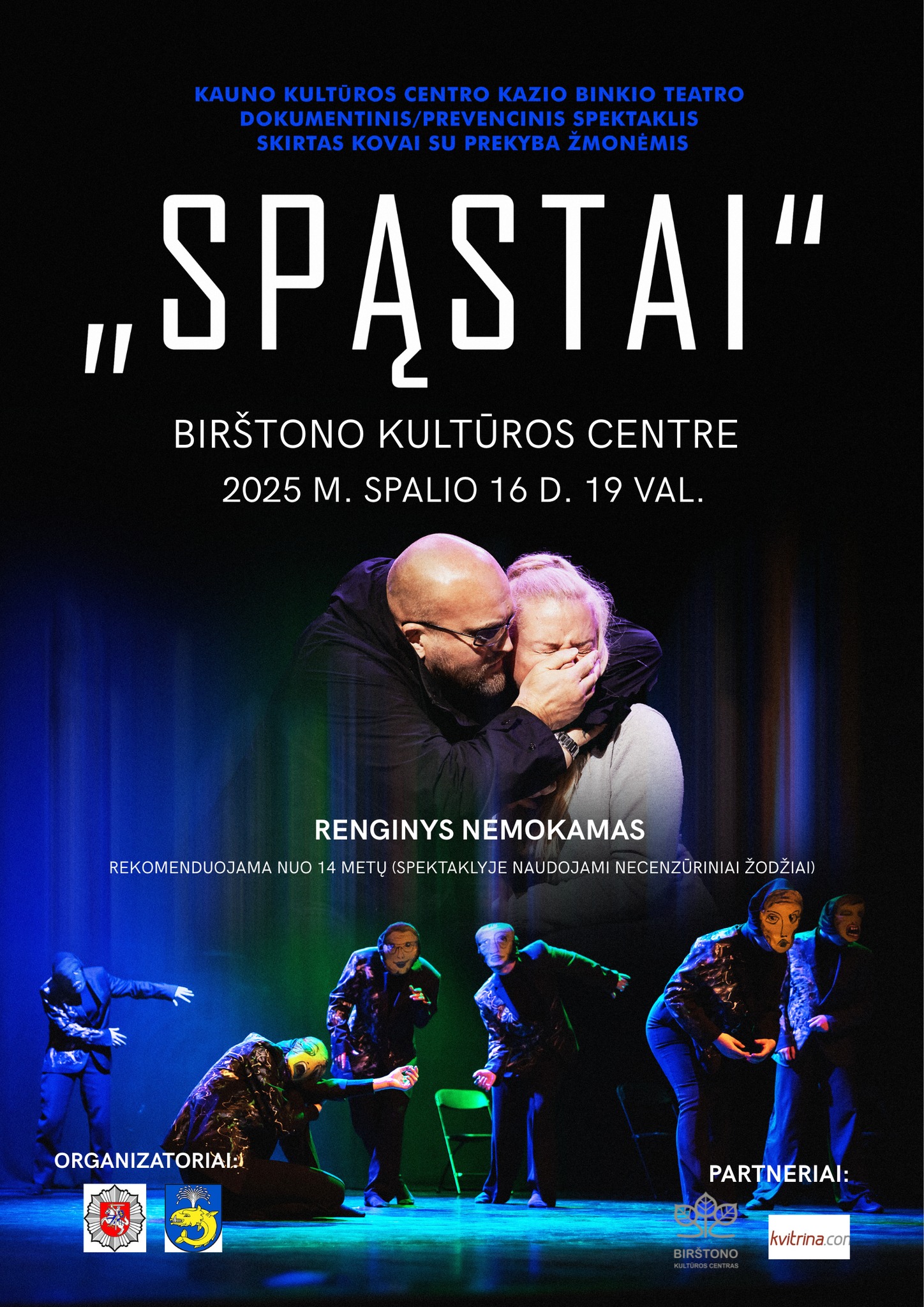Siekiant stabdyti ir apsaugoti kuo daugiau žmonių apie tai skleidžiant žinią įvairiais būdais, Alytaus apskrities vyriausiojo policijos komisariato Birštono policijos komisariatas, Birštono savivaldybė, Birštono kultūros centras bendradarbiaujant su Kauno Kazio Binkio teatru, organizuoja K. Binkio teatro sukurto dokumentinio/prevencinio spektaklio „Spąstai“ peržiūrą.