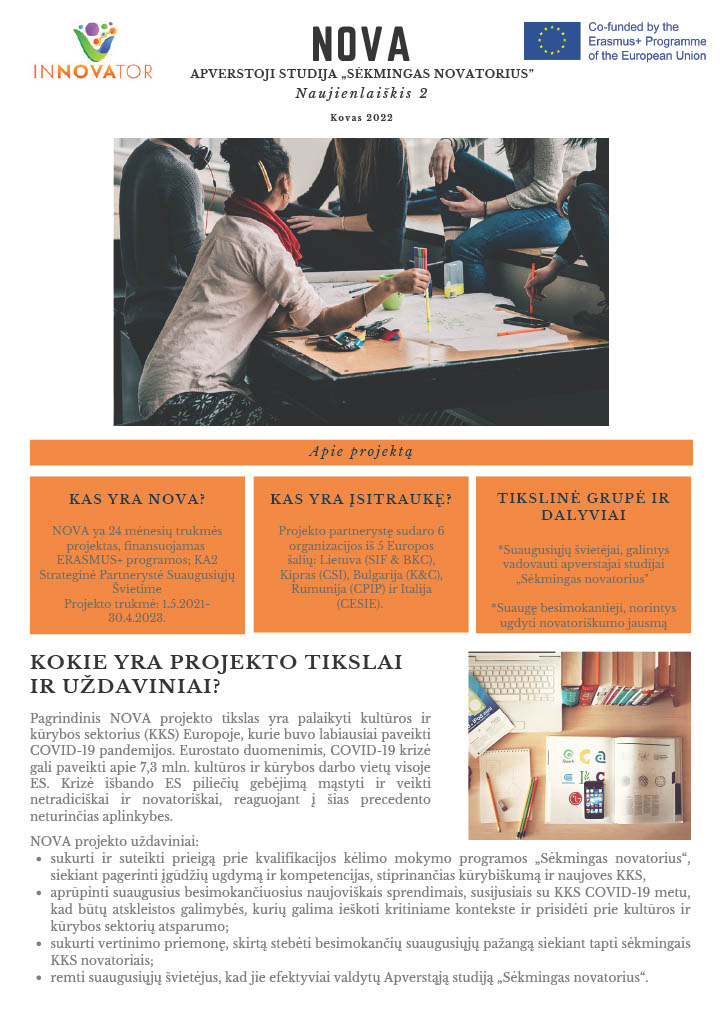 NOVA APVERSTOJI STUDIJA „SĖKMINGAS NOVATORIUS” Antrasis naujienlaiškis
