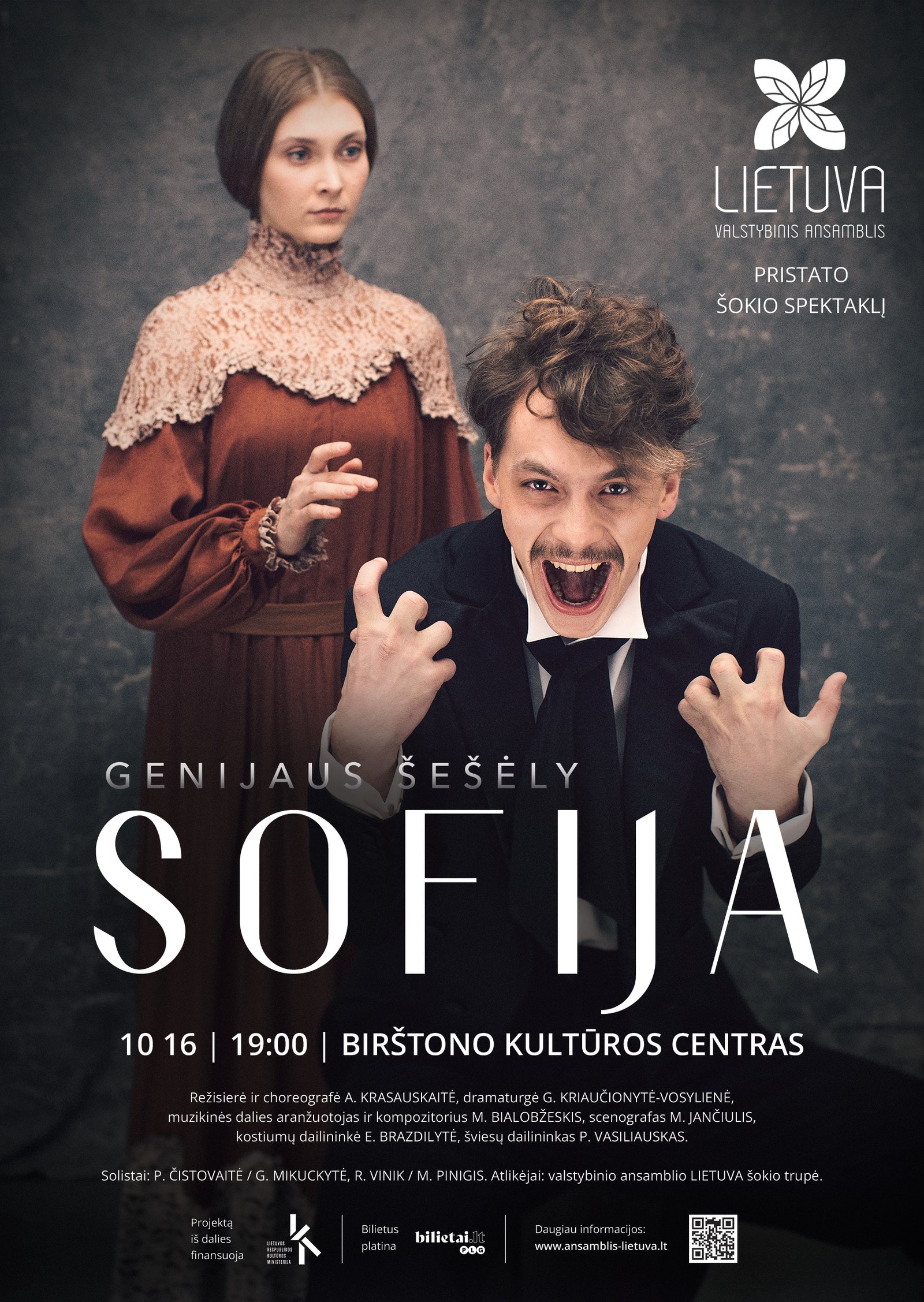 Ansamblis „Lietuva“ pristato premjerą – šokio spektaklį „Sofija“, kuris drąsiu žvilgsniu sužadins tai, kas (ne)tikėta, o gal ir neretai nutylima. Nauja programa bus pristatoma kovo 5-6 d. Vilniaus senajame teatre, vėliau turas tęsis kituose Lietuvos miestuose. M. K. Čiurlionio metai kupini dėmesio ryškiausiems jo nuopelnams bei įspūdingai menininko biografijai, kas spektaklio kūrėjus įkvėpė priešingam sumanymui – itin jautriai ir atvirai (iš)pažinčiai su jo didžiąja mūza Sofija Kymantaite – Čiurlioniene.
